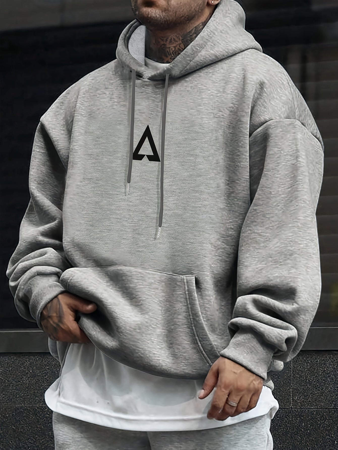 Men'S Casual Geometric Hoodie with Kangaroo Pocket